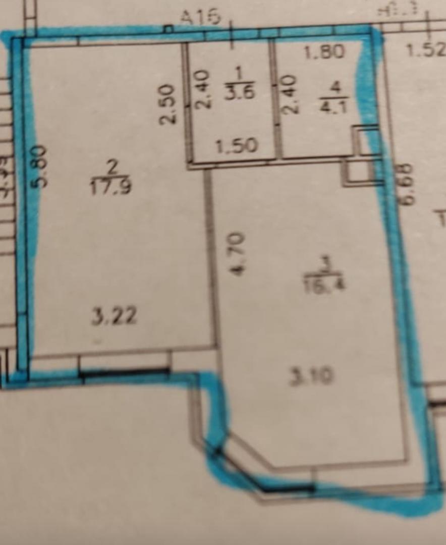 Квартира расположена на 2 этаже /10 этажного дома, общая площадь 42 кв.м., жилая площадь 17,9 кв.м., кухня 16,4 кв.м., С/У совмещен.